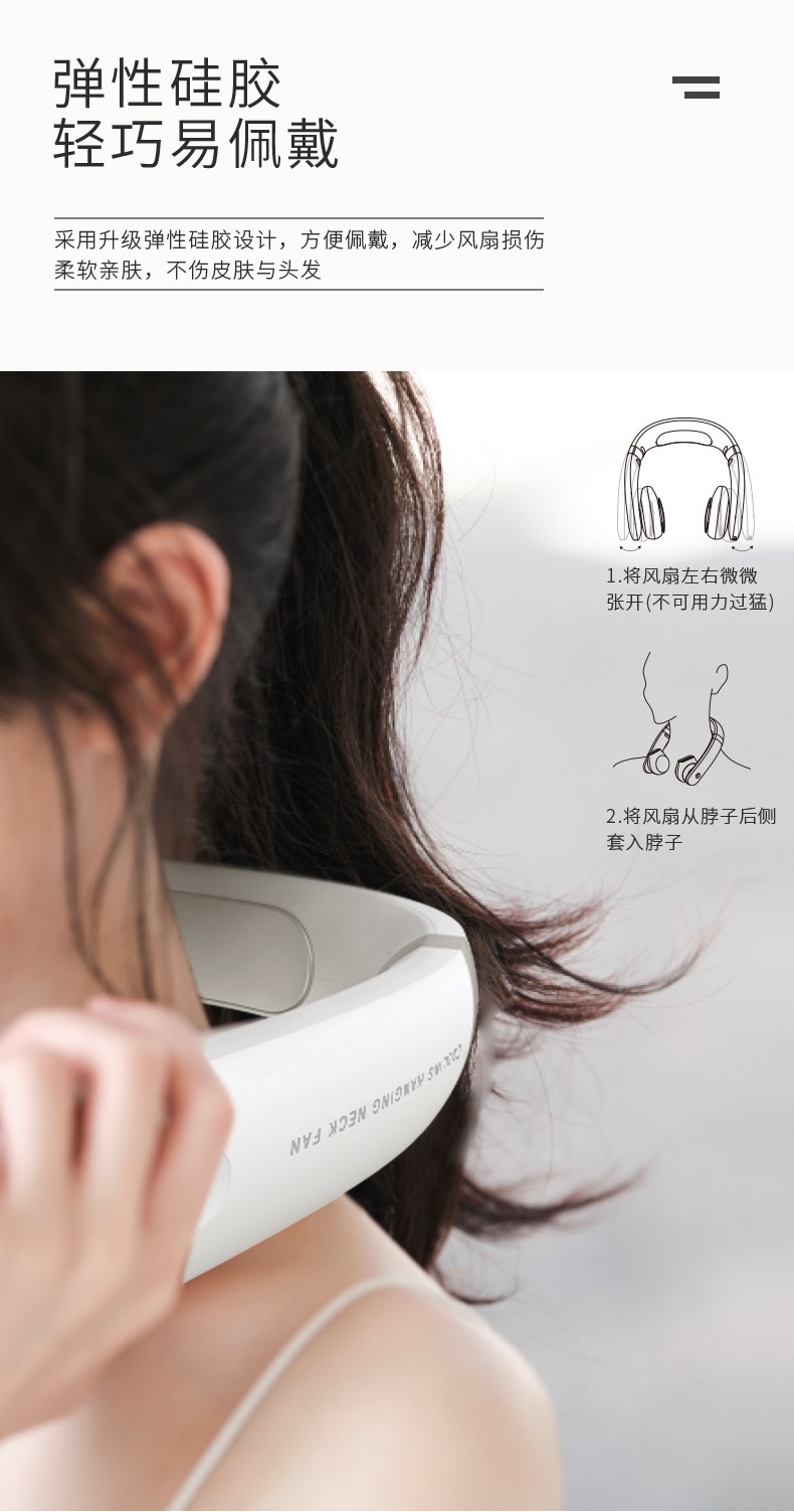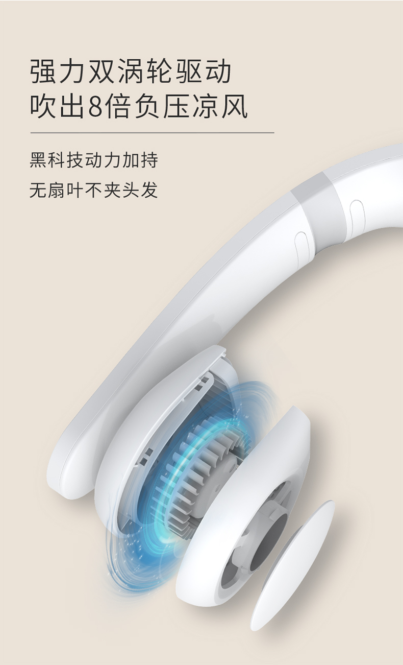 當前位置:中國e直播帶貨供應(yīng)鏈機構(gòu)>產(chǎn)品資訊 便攜掛脖式無葉風扇,高顏值、超靜音、大風力、出風柔,無葉片、吹出來的風也更加柔和,對長發(fā)女生格外友好,再也不用擔心自己秀發(fā)被扇葉攪住咯~對長發(fā)女生很友好哦