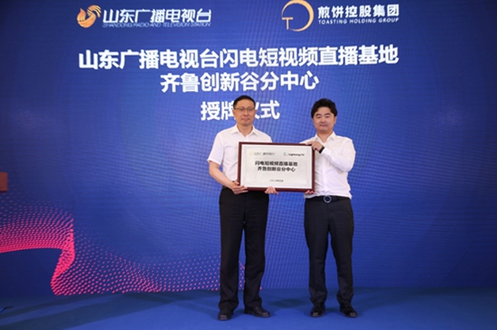 山東廣播電視臺副臺長林修功為閃電短視頻直播基地齊魯創(chuàng)新谷分中心授牌