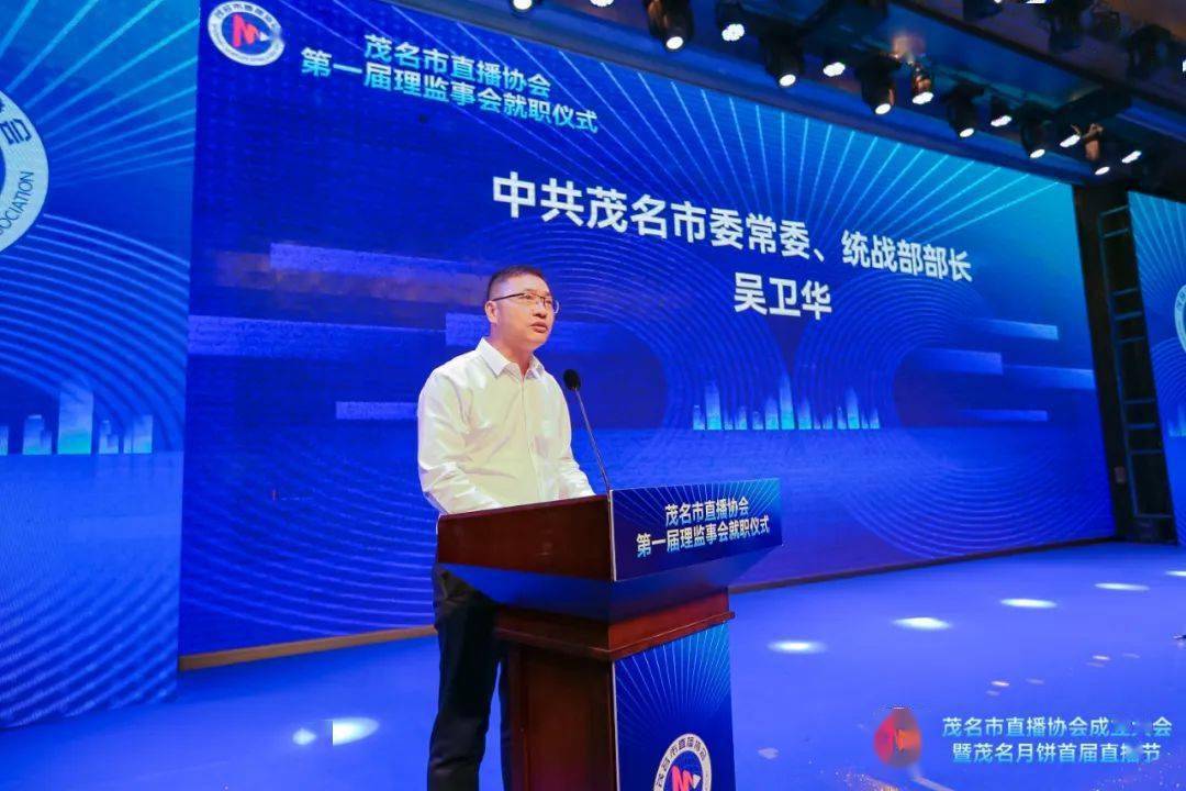 中共茂名市委常委、統(tǒng)戰(zhàn)部部長(zhǎng)吳衛(wèi)華代表中共茂名市委統(tǒng)戰(zhàn)部對(duì)直播協(xié)會(huì)的成立以及對(duì)當(dāng)選的第一屆理監(jiān)事會(huì)領(lǐng)導(dǎo)班子成員表示熱烈的祝賀。在致辭中,他希望茂名市直播協(xié)會(huì)圍繞凝聚一顆心、匯聚一股力、同畫一個(gè)圓的工作思路,強(qiáng)化服務(wù)意識(shí),積極從有利于直播行業(yè)、直播產(chǎn)業(yè)快速發(fā)展的角度來(lái)謀劃推動(dòng)工作,著力優(yōu)化直播營(yíng)商環(huán)境。