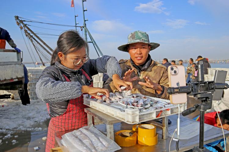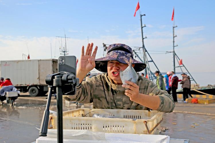 在日照黃海中心漁港內(nèi),變身為“網(wǎng)紅”的漁民們,手握新鮮的海鮮,正通過各大網(wǎng)絡(luò)平臺,現(xiàn)場直播各種海鮮的吃法和做法,向天南海北的粉絲們推介日照特色海鮮,同時(shí)開通電商平臺,將本地優(yōu)質(zhì)的海產(chǎn)品推向全國。(宋洪飛)