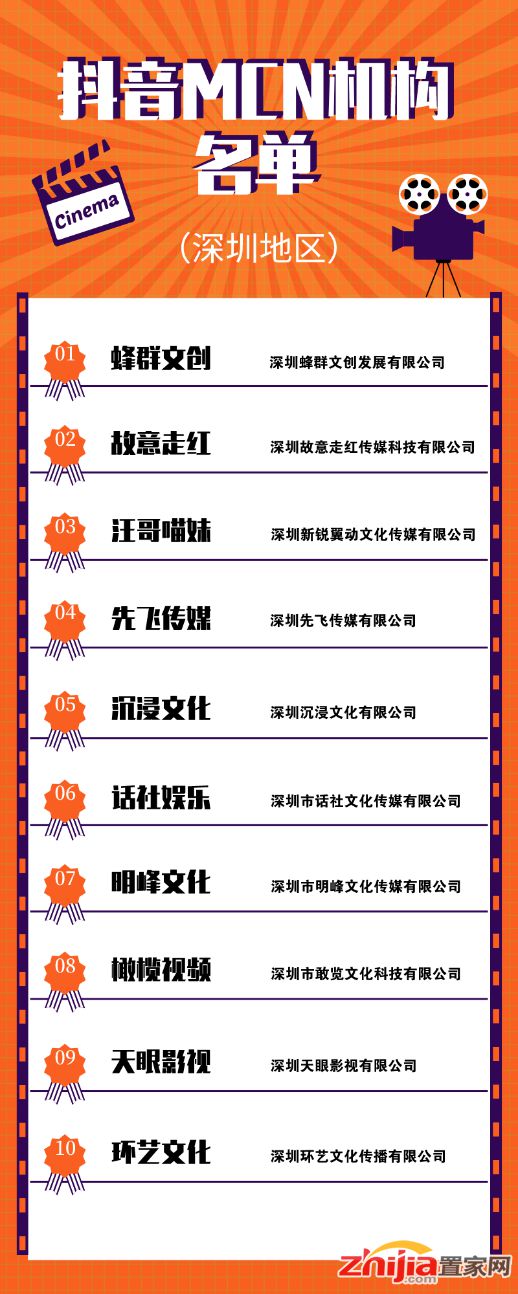 洋蔥集團、二咖傳媒、華星酷娛、故意走紅、、papitube、蜂群文化傳播、樓氏集團、熱度傳媒、新動傳媒、古麥嘉禾等。