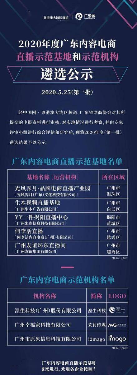 “2020年度廣東內(nèi)容電商直播示范基地和示范機構(gòu)”遴選公示