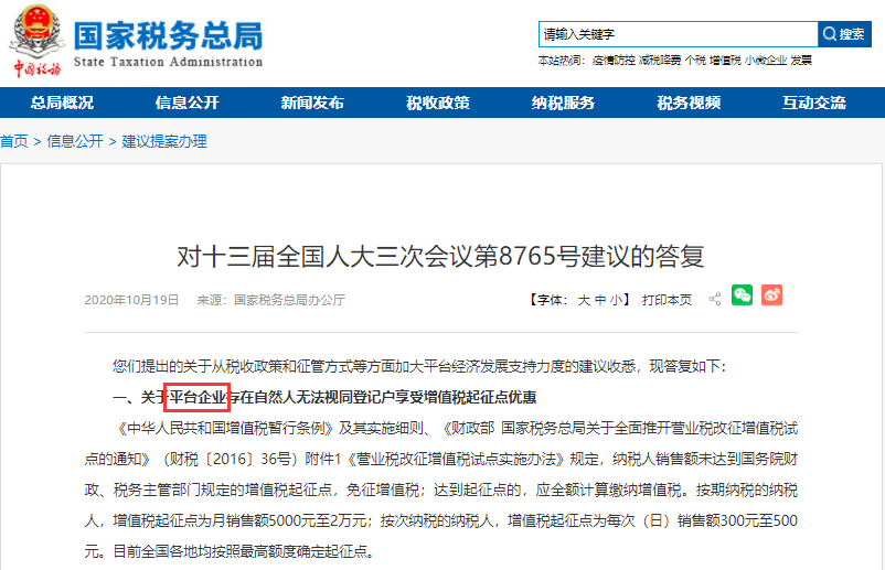 近日,國家稅務(wù)總局對十三屆人大三次會議第8765號建議進行了答復。